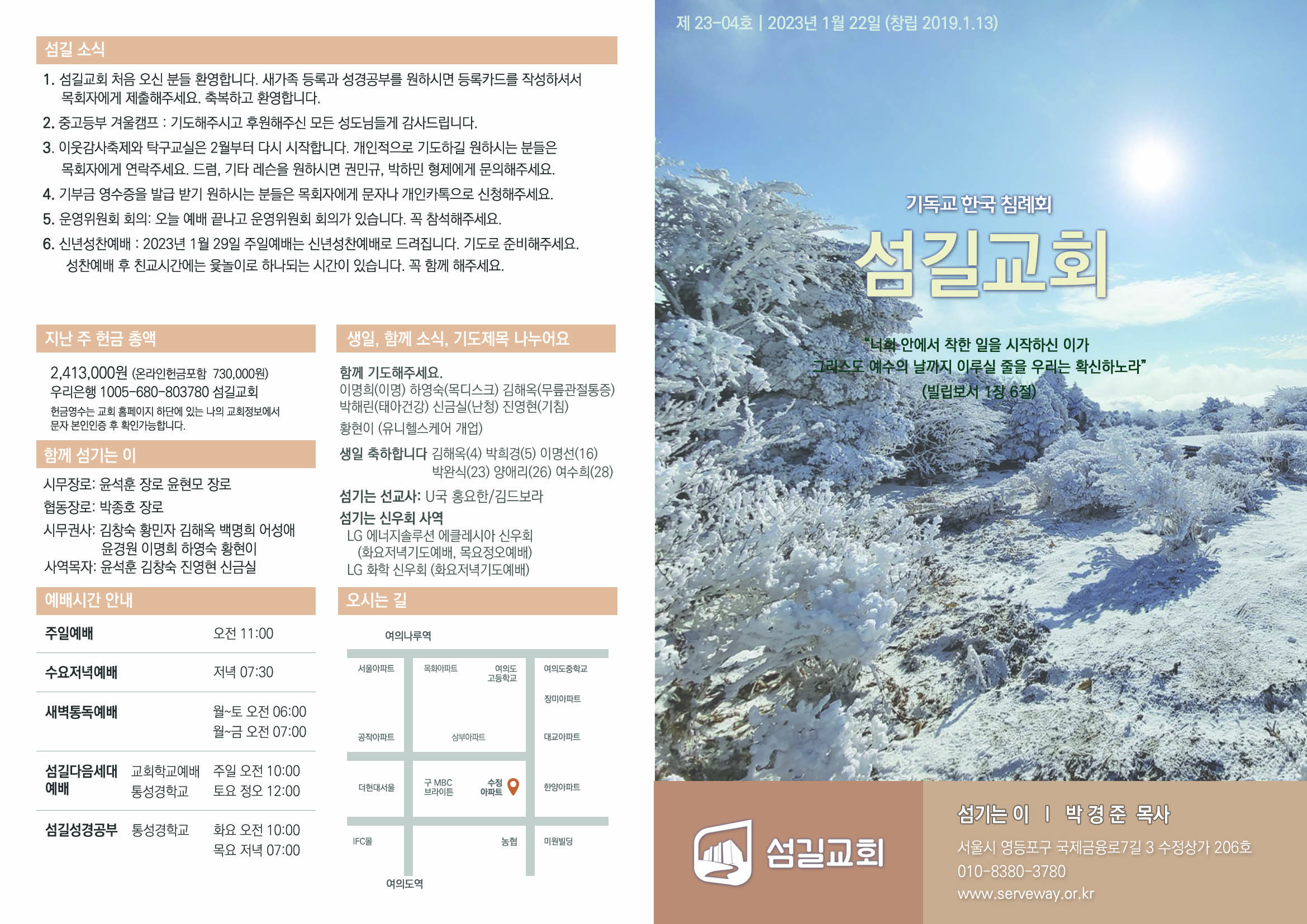 2023년 1월 22일 섬길주일주보
