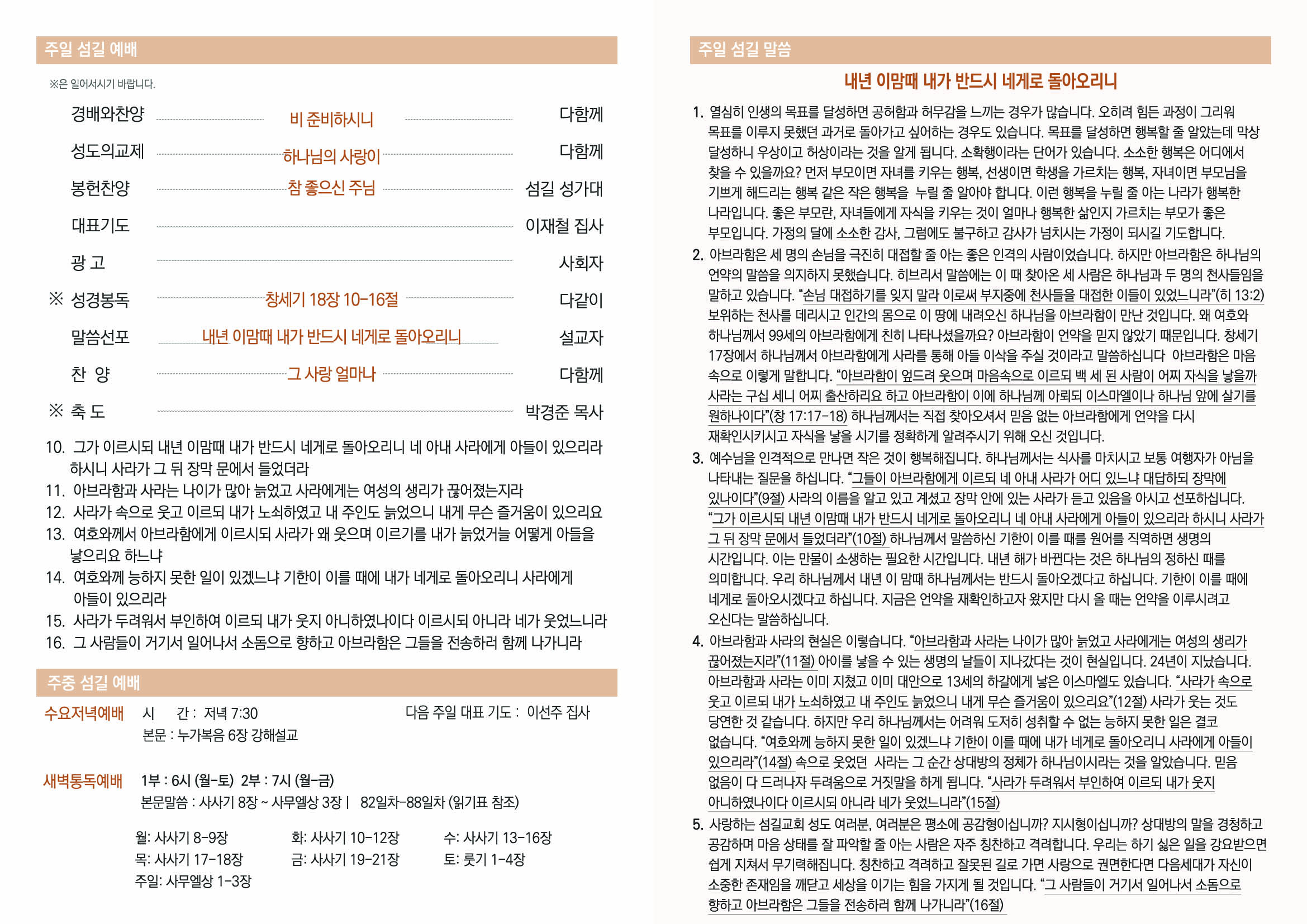 2023년 5월 14일 섬길주일주보
