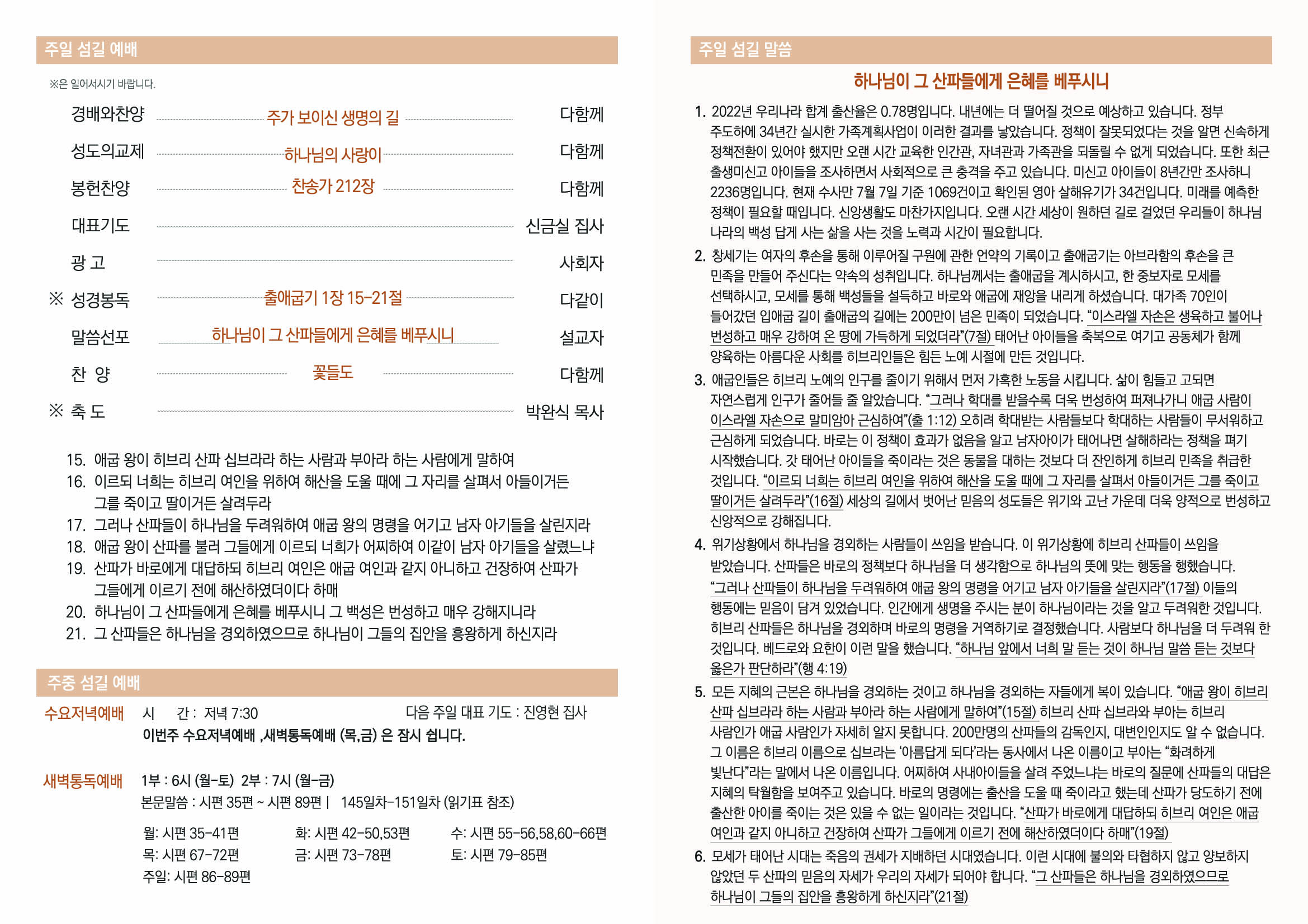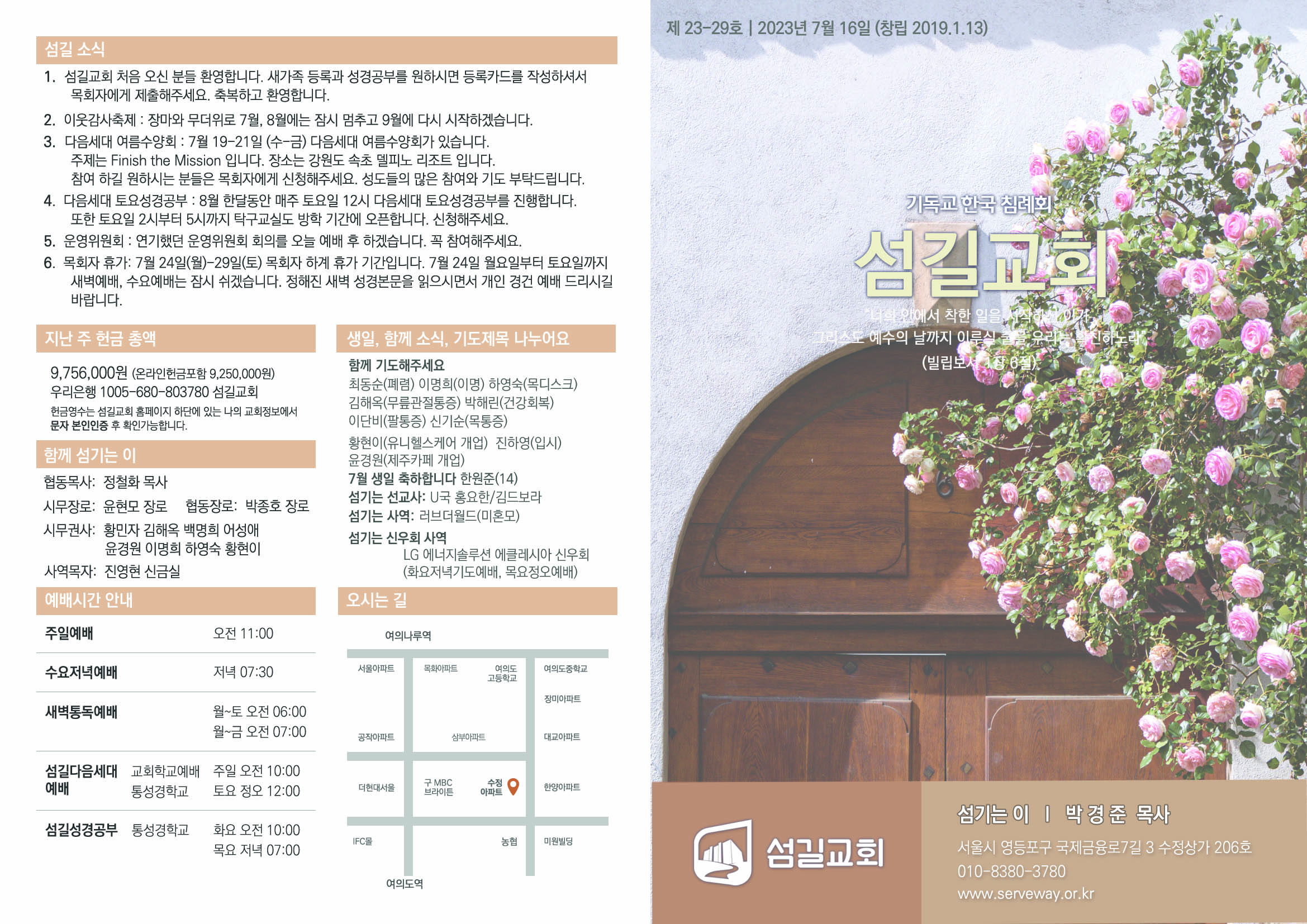 2023년 7월 23일 섬길주일주보