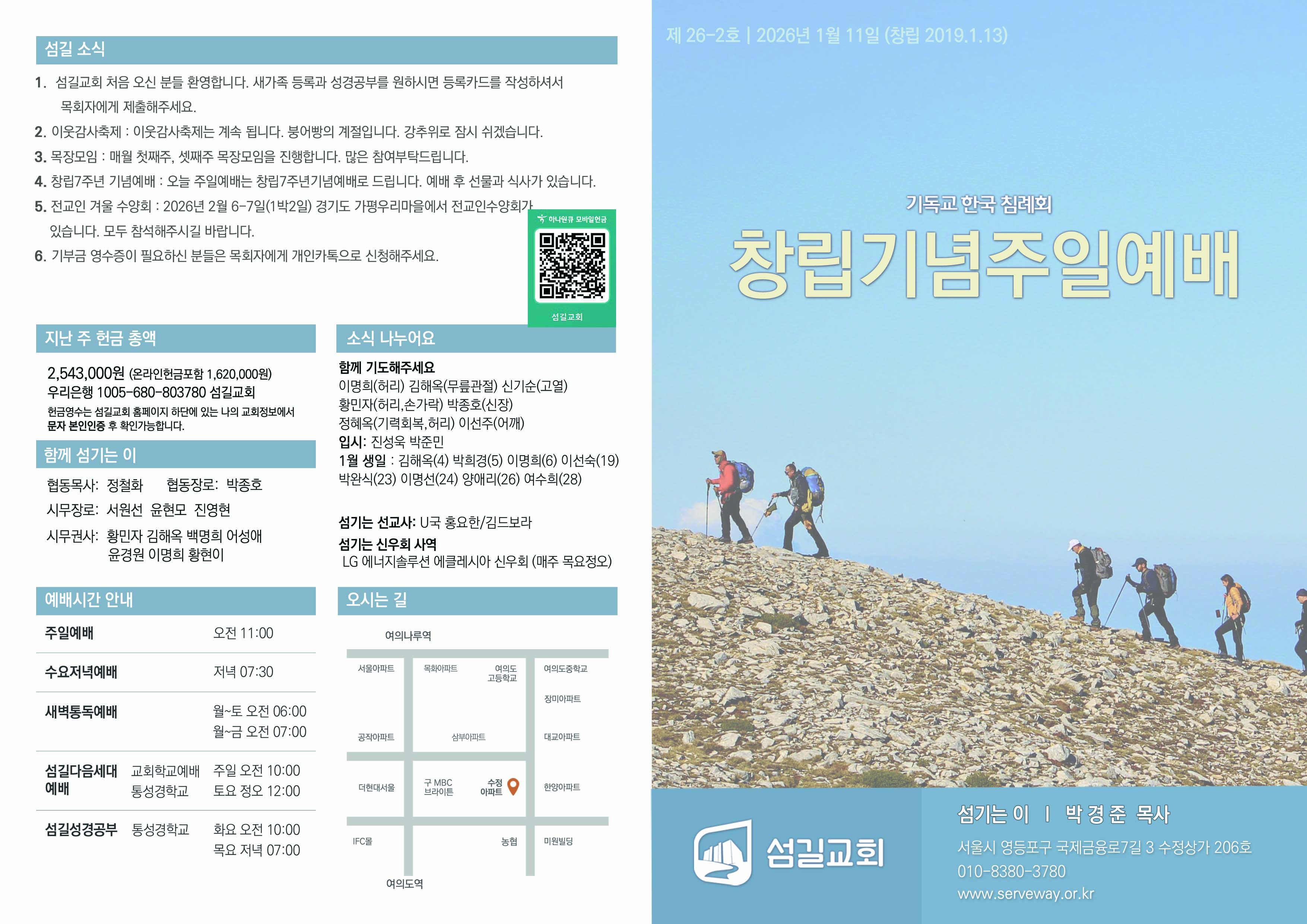 '2026년 1월11일 섬길교회 창립7주년기념감사예배