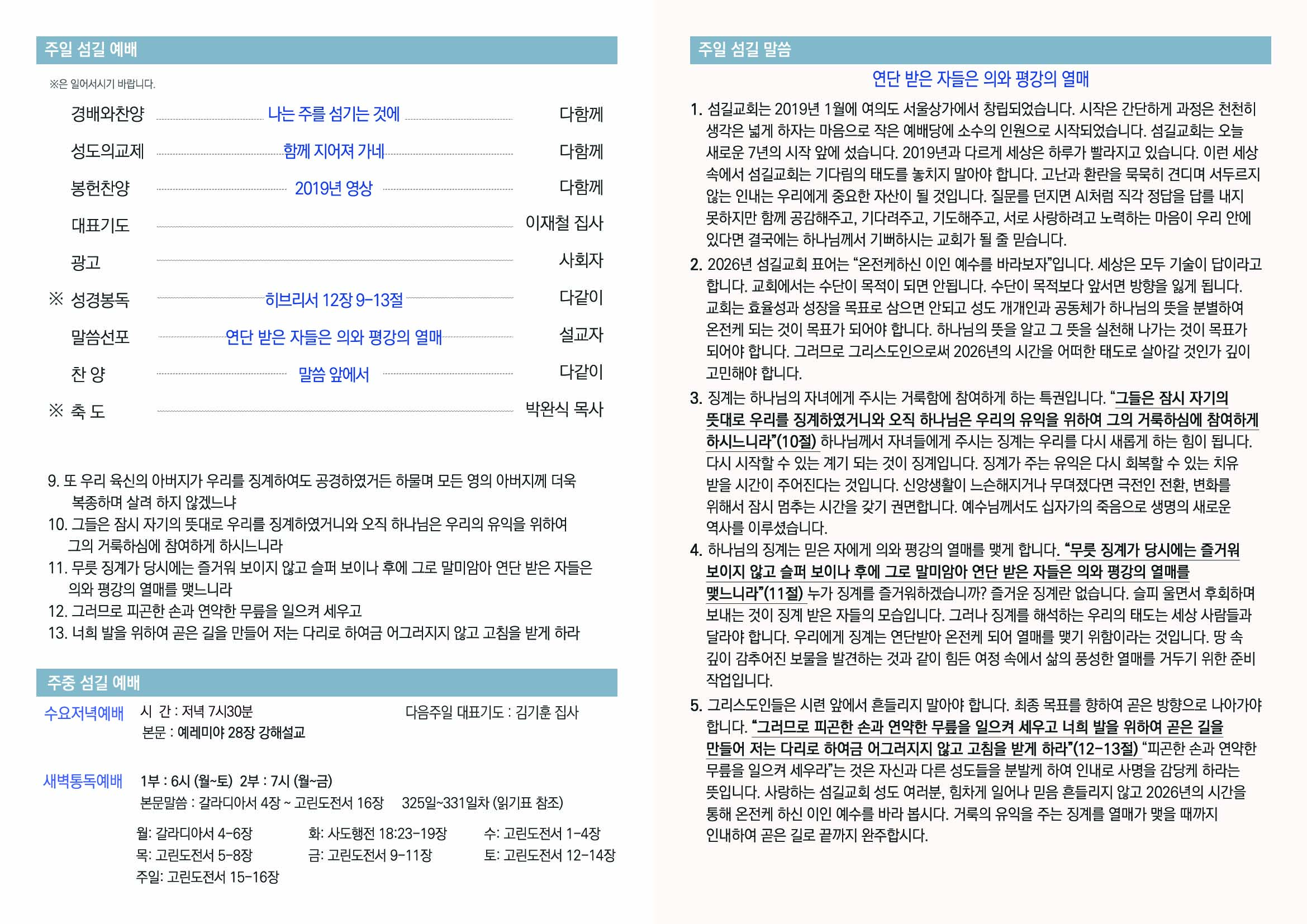 2026년 1월 4일 섬길주일주보