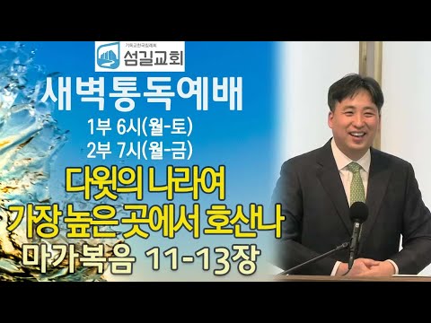 최근 영상 다윗의 나라여 가장 높은 곳에서 호산나 (마가복음 11-13장) 2025년12월12일(금) 섬길교회 새벽통독예배 실황 1부 6시(월-토) / 2부 7시 (월-금) 박경준 목사2025.12.12 내 사랑하는 아들이니 너희는 그의 말을 들으라 (마가복음 9-10장) 2025년12월11일(목) 섬길교회 새벽통독예배 실황 1부 6시(월-토) / 2부 7시 (월-금) 박경준 목사2025.12.11