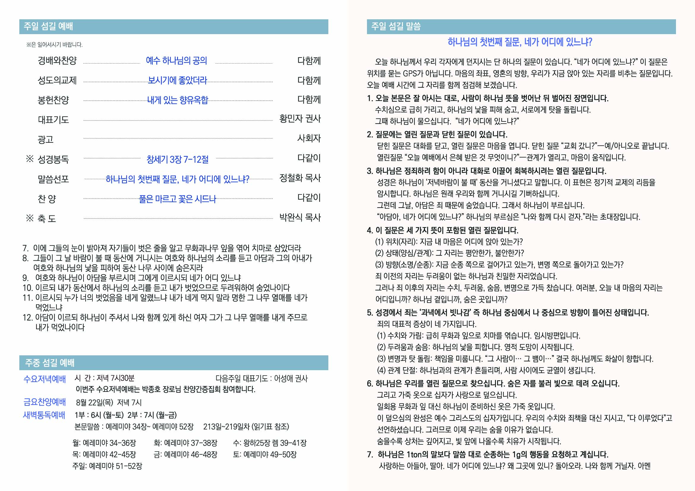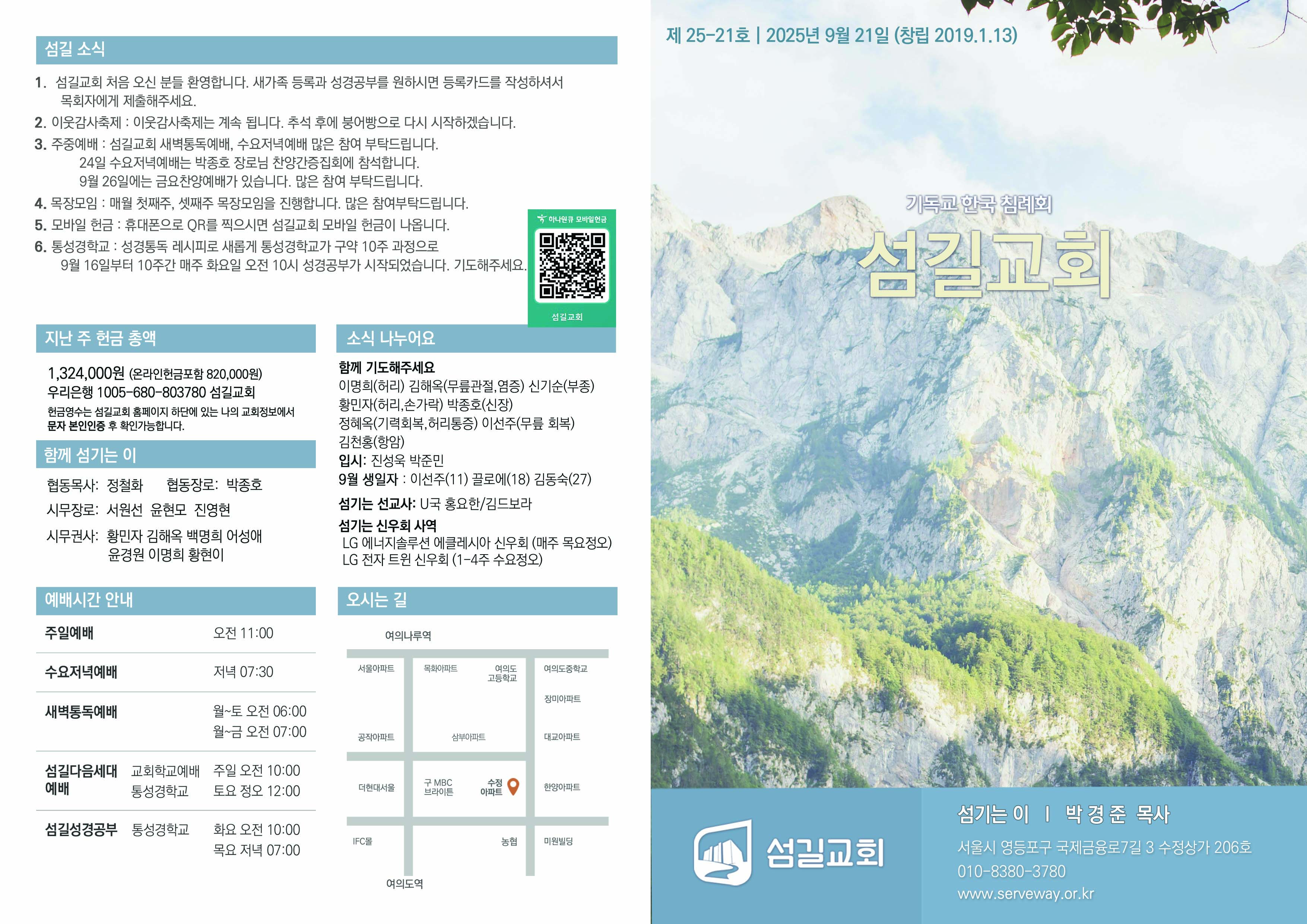 2025년 9월21일 섬길주일주보