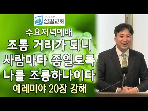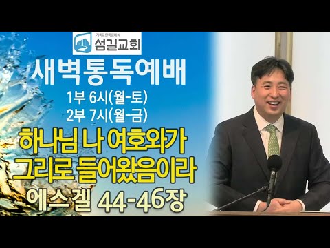 최근 영상 하나님 나 여호와가 그리로 들어왔음이라 (에스겔 44-46장) 2025년11월6일(목) 섬길교회 새벽통독예배 실황 1부 6시(월-토) / 2부 7시 (월-금) 박경준 목사2025.11.06 조롱 거리가 되니 사람마다 종일토록 나를 조롱하나이다 (예레미야 20장 강해) 섬길교회 수요저녁예배 실황 2025년11월5일 저녁7시 박경준 목사2025.11.05